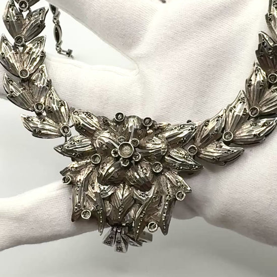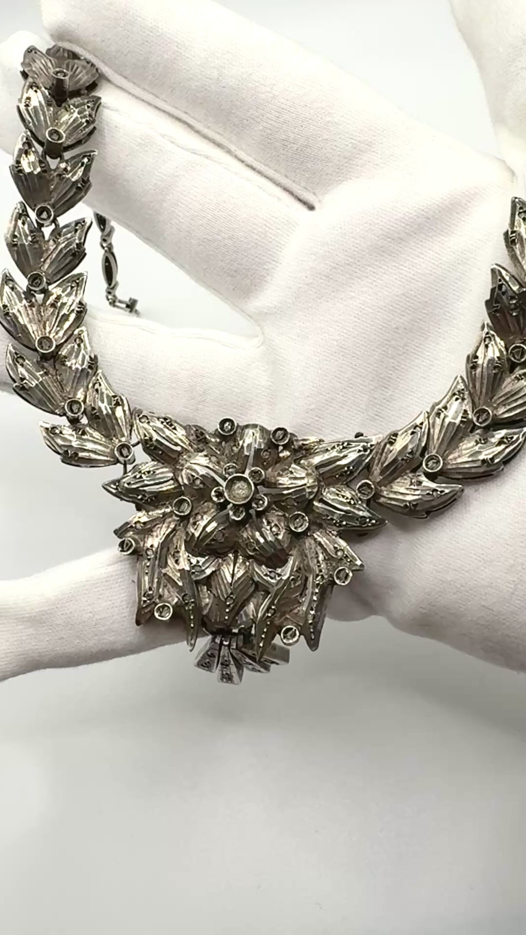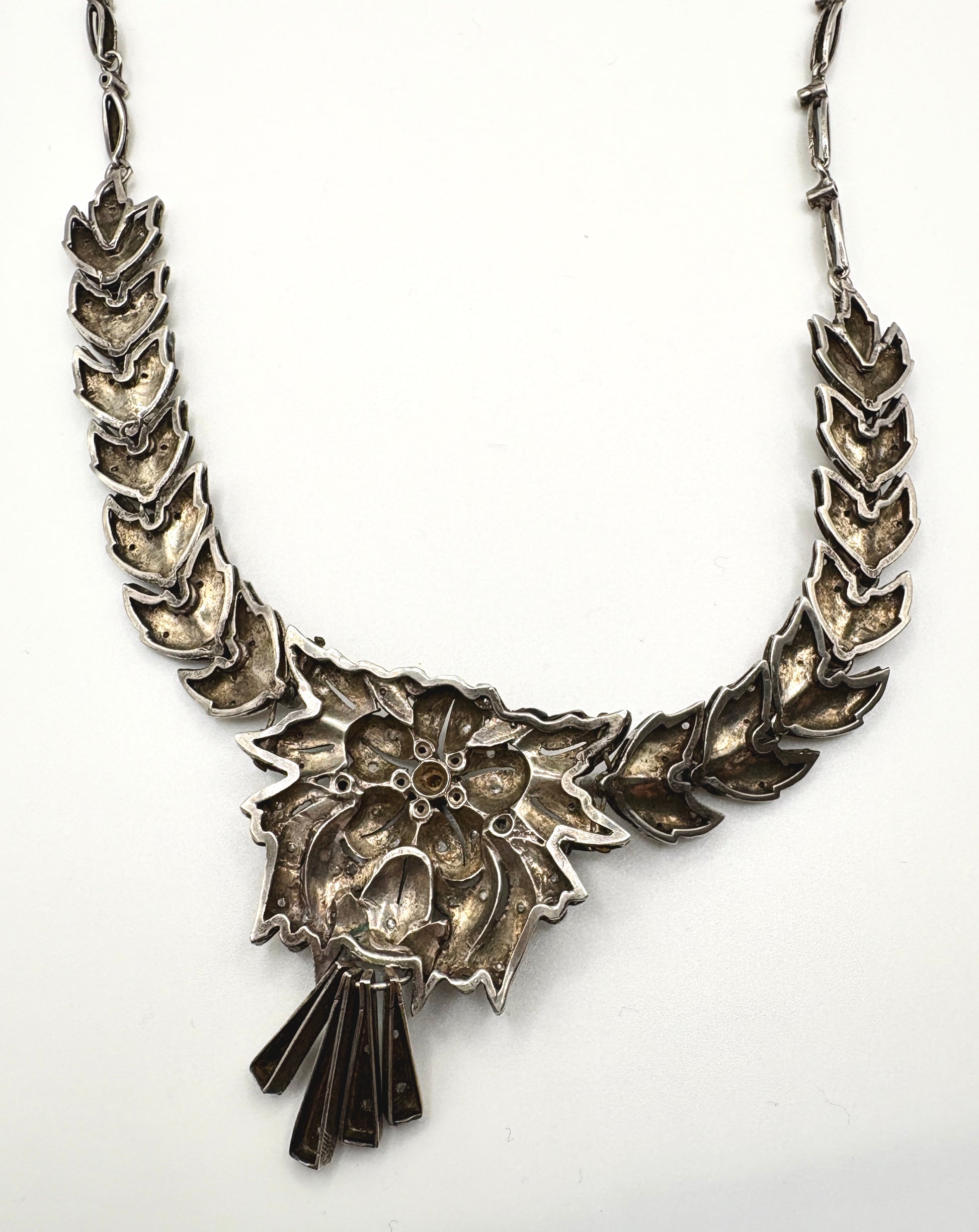 1920s Art Deco Solid Silver Necklace with Diamond clusters (Great Gatsby Style)