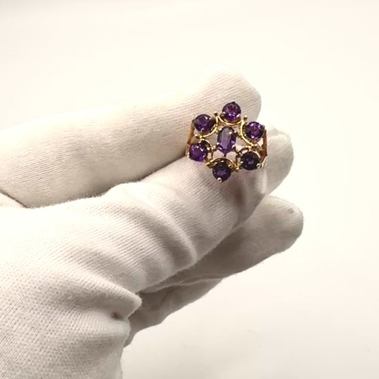 9ct Yellow Gold Amethyst Flower Statement Ring