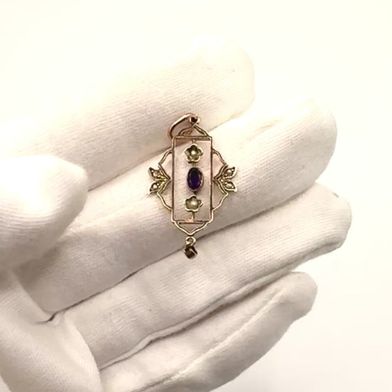 Antique Edwardian Solid 9ct Gold Pendant with Garent & Pearls