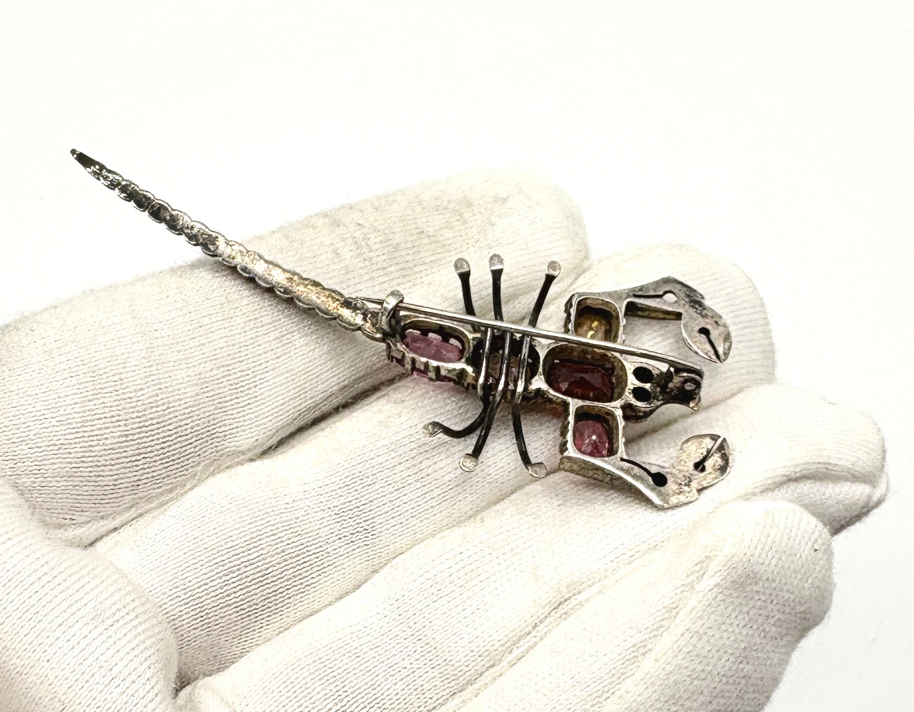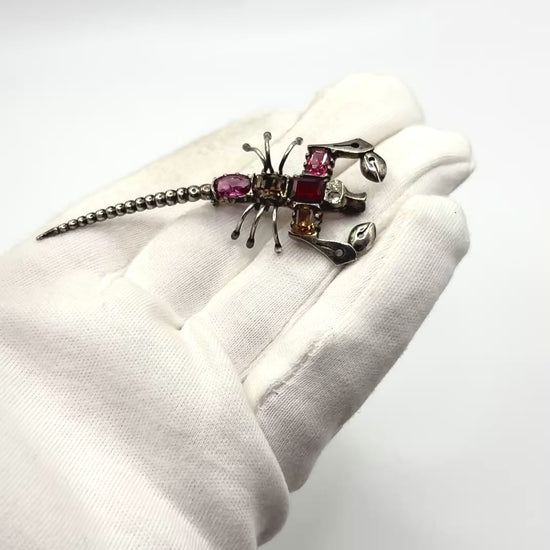 Antique Edwardian Solid silver Scorpion Brooch with Gemstones