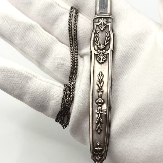 Antique Victorian Sterling Silver Pencil Case Pendant on Curb chain