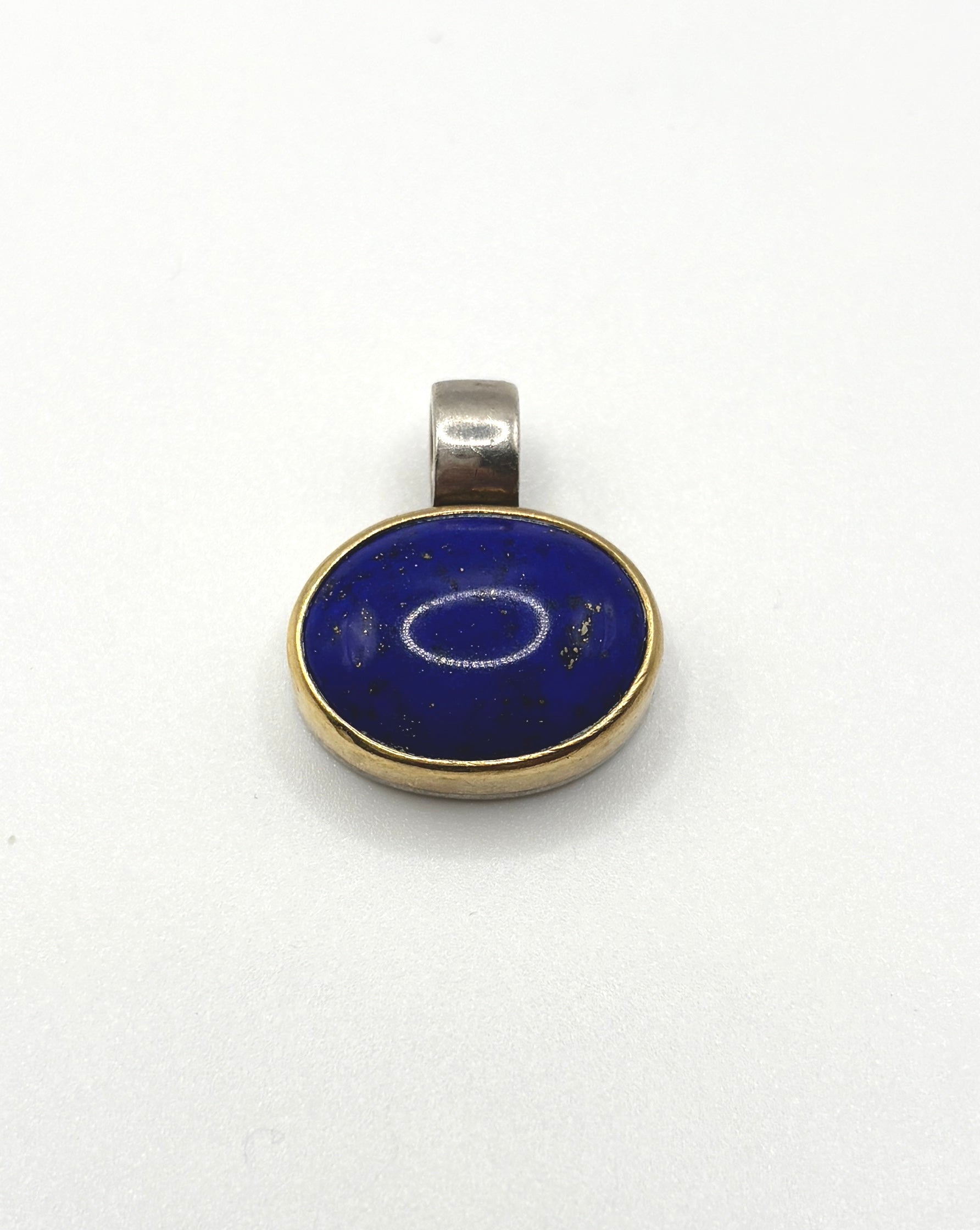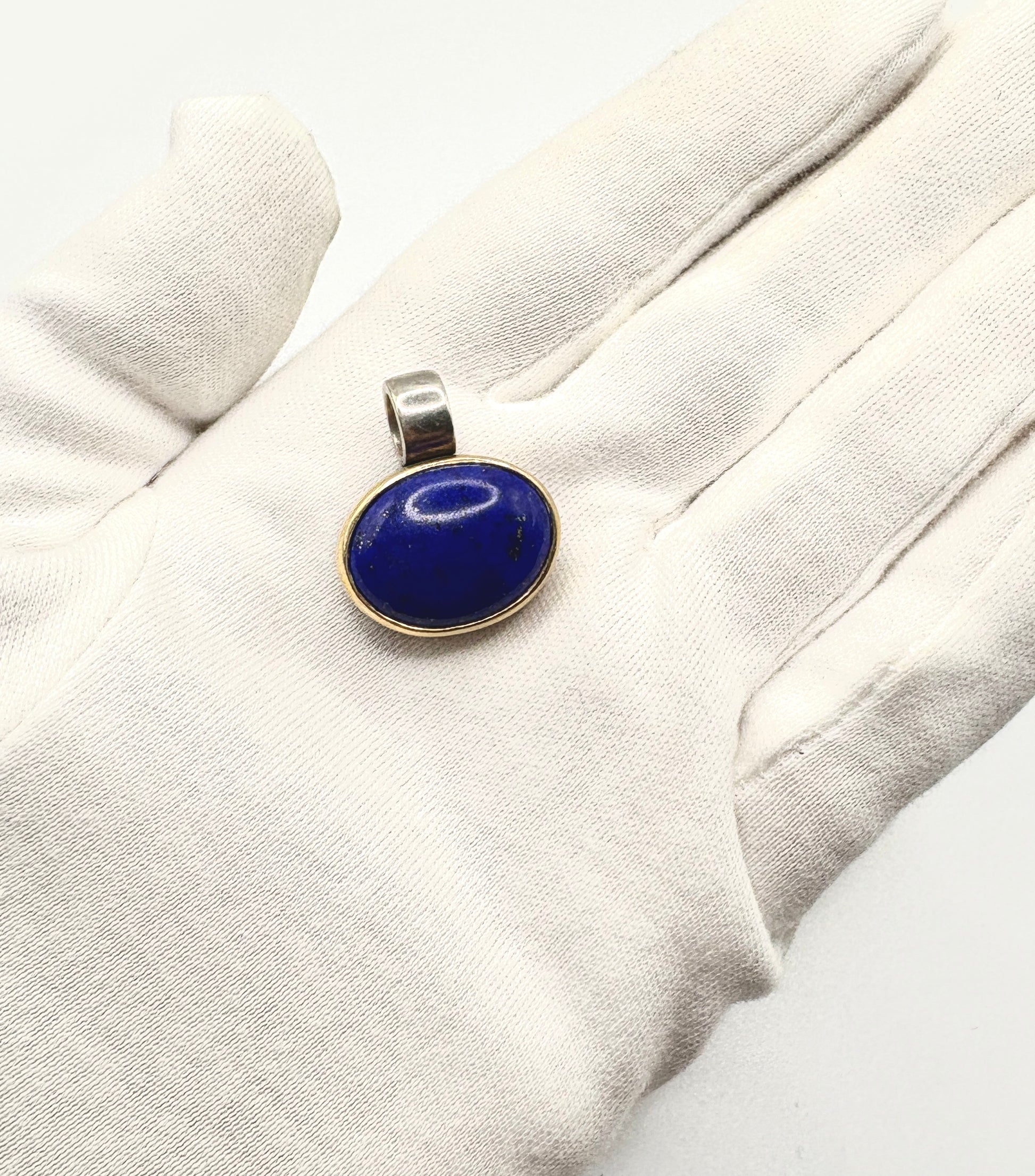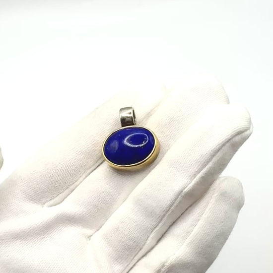 Cabachon Lapis Pendant set in Solid Silver 925 & Gold