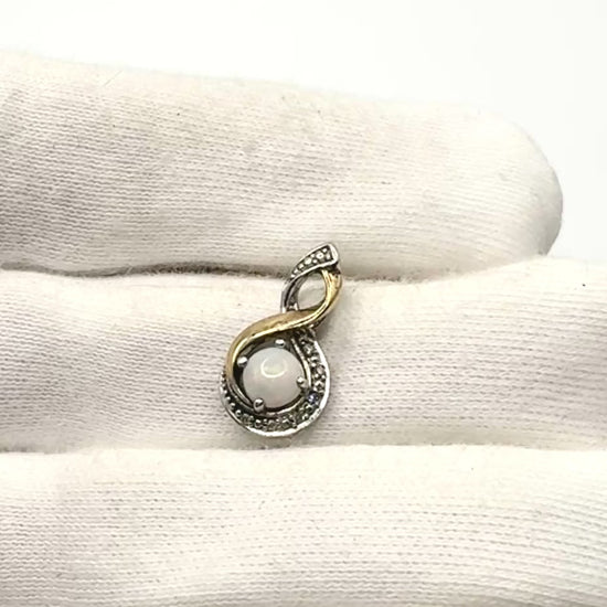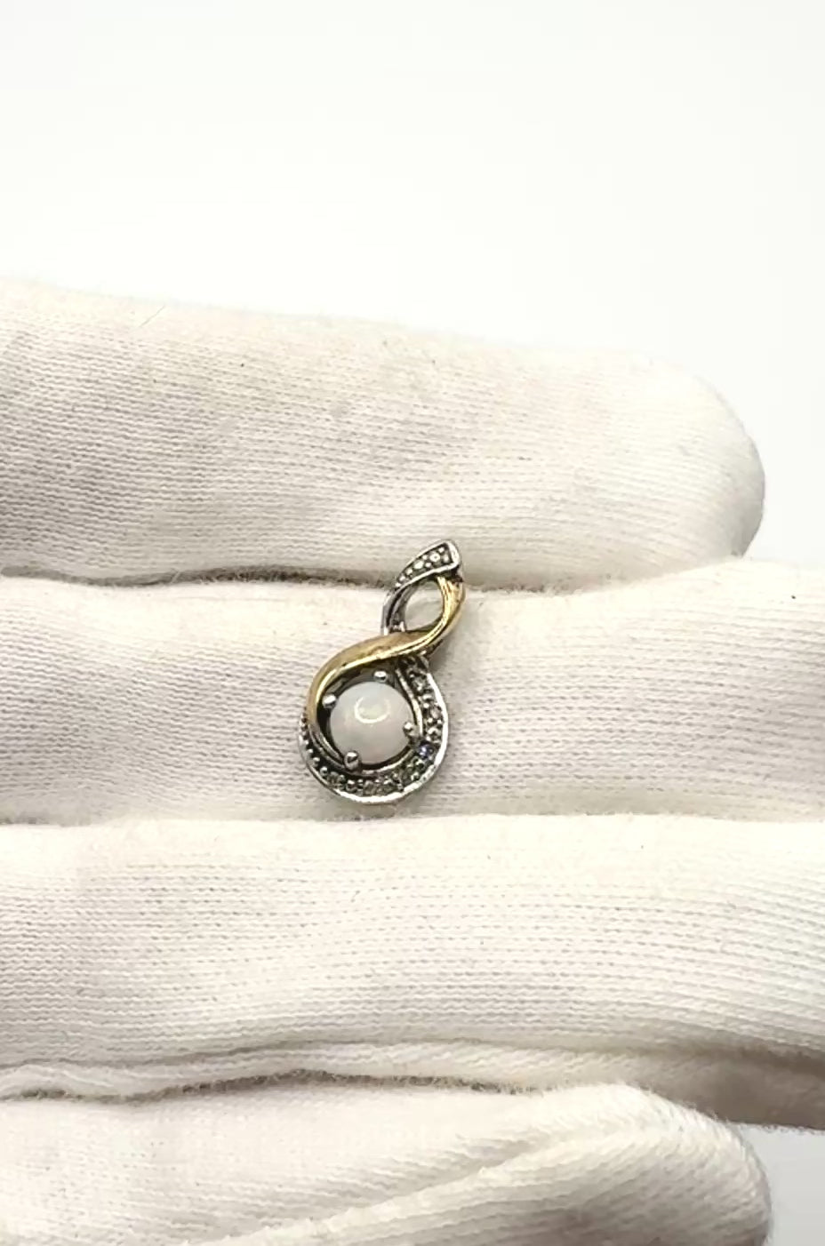 Opal & Diamond Pendant Solid Silver 925 & 9ct yellow Gold