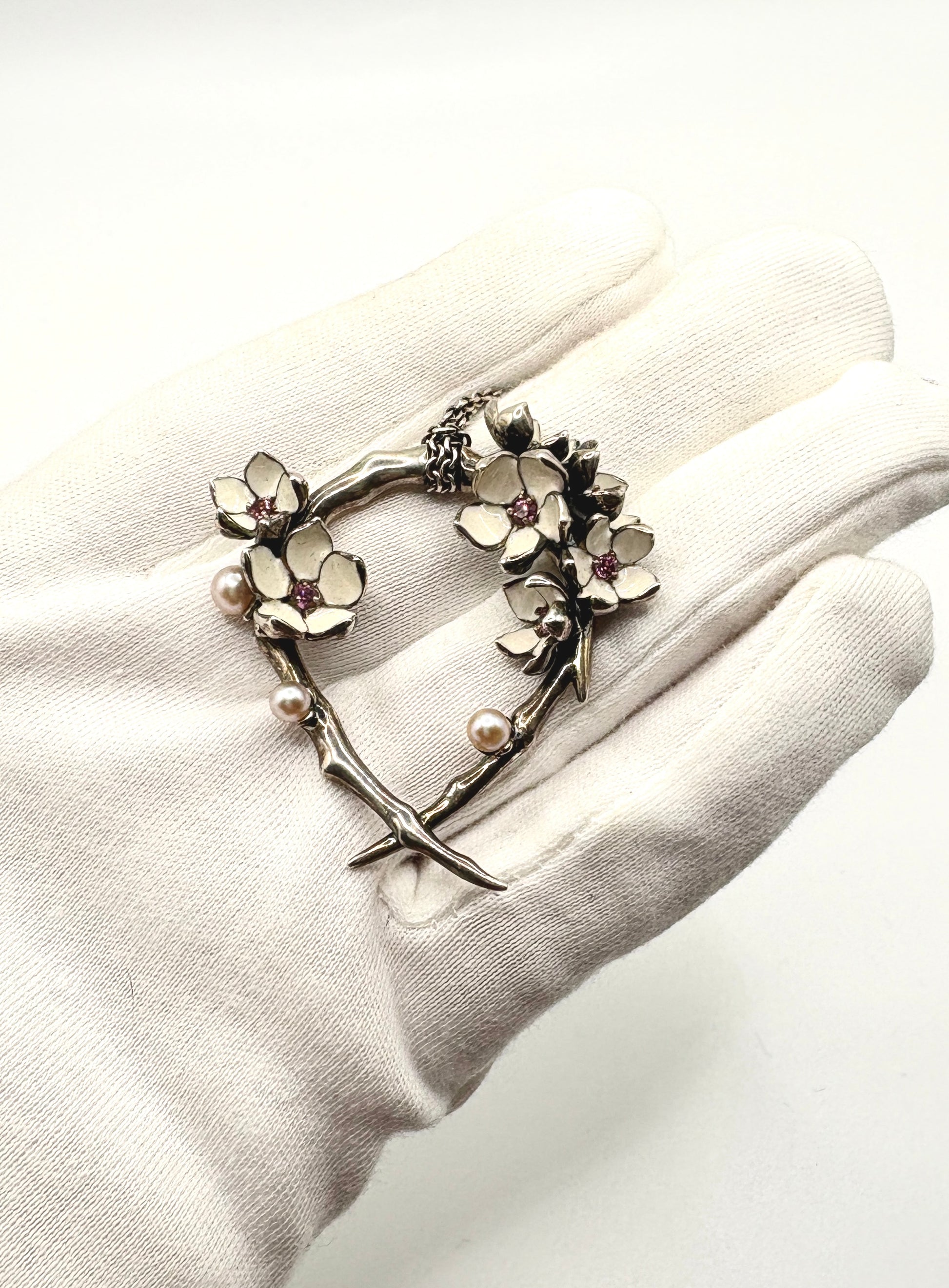 Shaun Leane Flower Necklace Solid Silver 925 & Enamel & Pink sapphire stones