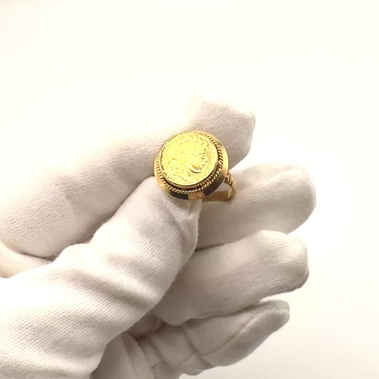 Vintage 18ct yellow gold Ring With a 21ct gold Roman Coin